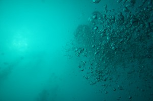 Mark 跳入水中,享受凉爽海水的拥抱,从闷热的潜水船甲板到清凉的水下,真是一个非常完美的转换,他渴望成为第一个到达下面沉船的人。他将BC排空,背后双气瓶的重量将他迅速拉下水面,他在水下转过身来形成一个舒适的游泳姿势,下降过程中,他稍稍给BCD充了一点气,以减缓下沉速度。这时他发现调节器没有空气了,切换到备用调节器之后,他吸了短短两口气,备用调节器也停止了传输空气。在往海底下沉的过程中,他才意识到了自己的错误,试图触及到背后的气瓶阀门,但确没办法碰到阀门,他努力想松开BC和配重,但继续沉的更深。