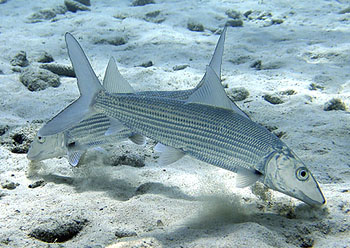 北梭鱼为底食泥鱼,在泥土或沙里挖掘虾及蟹等作为食物。体色为银白色,带着细长的蓝色或绿色条纹。它们的游速每小时均时超过80公里。