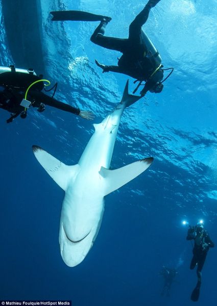 据悉,鲨鱼恍惚的状态被叫做“强直静止”,一种动物因为被抚摸鼻子而引起的暂时麻痹。Mathieu表示,教练可以通过摸鲨鱼的鼻子来刺激它的感觉器官。