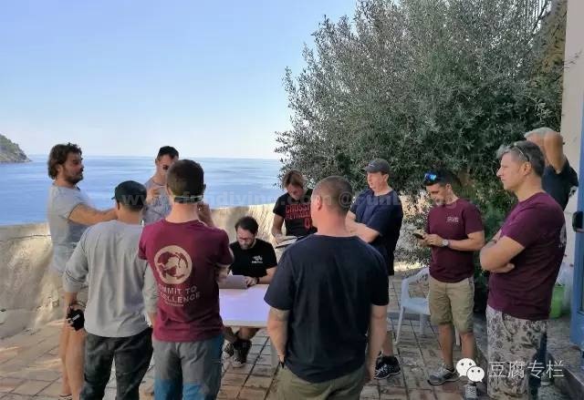 在这间砖头和铁板搭起来的破气房里,你会遇见来自全球各地的GUE T2级别以上潜水员,很多已经是GUE CCR潜水员或是GUE教练。T2是参加项目的基本要求,因为前面说过,这些文物都在60米深度以下的海底,目前探明的已经深至120-130米,定位、测量和拍摄也需要很长的有效水底时间,带着成捆的装备,一潜四五个小时是常事。下一百米呆五分钟的观光型技术潜水在这里没有用处,做项目才是真正有难度的潜水。