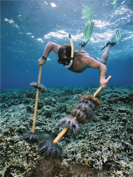 一人长的礁鲨,环抱不住的海龟,在这里都有自己的族群,成队地出现在人们视线里,落落大方。更幸运的话,可以见到海底偌大的鱼群组成的风暴,鱼群汇集的围墙,每一面都在提示人类世界的狭隘。海底,是另外一个世界。