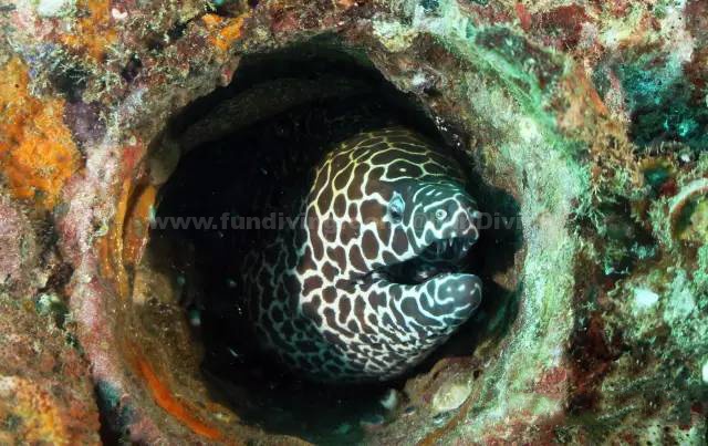 作为斯米兰船宿最后一天和最后一潜,来个沉船潜作为收官潜是再合适不过了。沉船最大深度为18到20米,如果想去更深的话只有自己带个铲子下去挖沙。这里能看到Baby海狼群,Baby大眼鲷鱼群,斑点鳐,狮子鱼,刺豚,乌贼,各种海兔等等,另外这里还能看到斑点鳗!全斯米兰就这个点有哦!