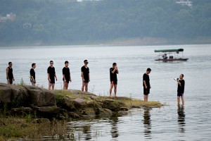 黝黑的皮肤、黑色的潜水镜和在若隐若现的黑色长枪,从水中缓缓探头观察情况后,不知何时,他又悄悄消失,好像从没出现过……这不是电影镜头,而是重庆特警突击队蛙人组训练中的一个真实场景。图片是重庆市公安局特警总队二支队在长寿湖进行涉水科目训练。