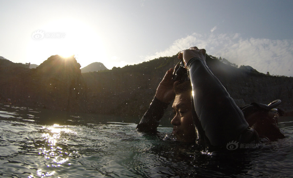 蛙人浮出水面。
