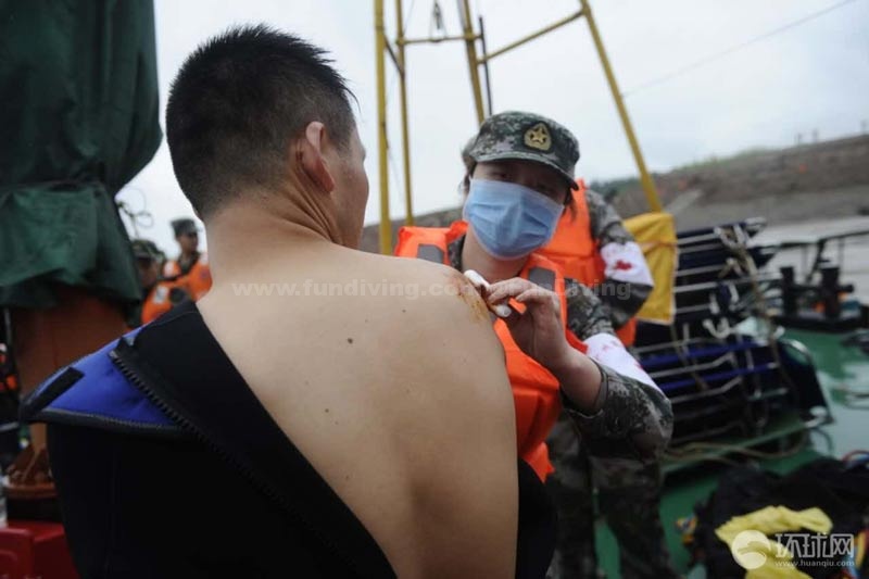 在“东方之星”翻覆客船救援过程中,潜水员被金属擦伤。