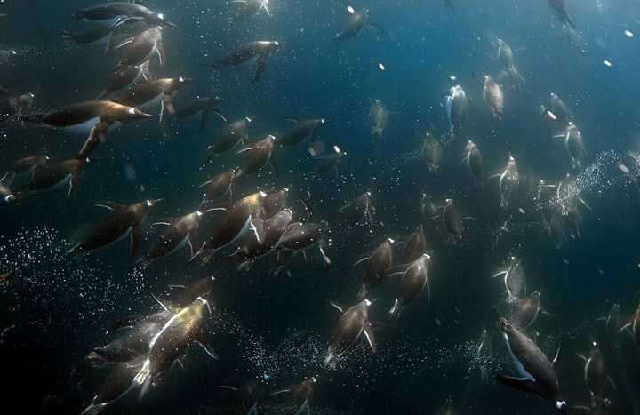 一天,瓦耶尔和伙伴非常幸运地看到一大群企鹅正在海里游,便立刻换上潜水服,跟上了它们。有趣的是,企鹅并不害怕他们,而是全都在吃浮游生物。他说:“这是我第一次看到如此之多的企鹅一起捕食,场面非常壮观,但我们担心它们受到打扰并且离开。
