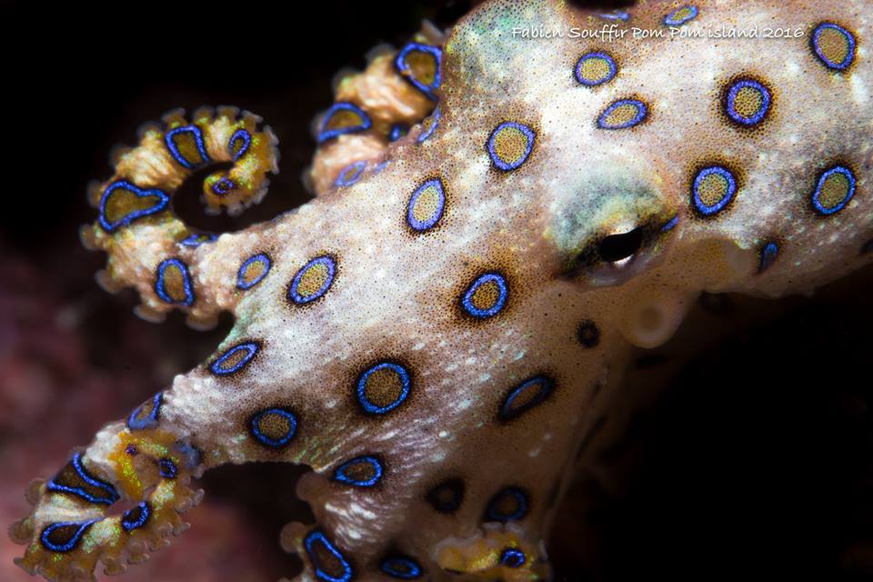 Blue ring octopus Pom Pom island, Sabah Feb 2016 Canon 70D & 100mm macro 2.8L is usm in Ikelite housing F18 1/200 iso 100 2 x Inon Z-240 (M Mode) 0% crop photo by Fabien Suffer