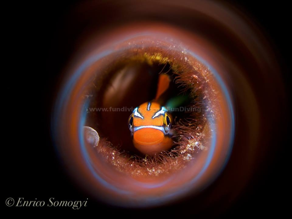 Fangteeth blenny in a bottle , Anilao 6.03.17, Olympus E-pl6 with 10 bar Housing, Olymp.60mm macro, Inon S2000 with Snoot, F2,8; 1/250s, Iso 200 Photo by Enrico Somogyi