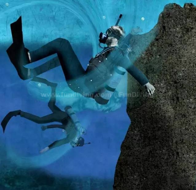 当你进行峭壁潜水时,可能会忽然发现自己被水流快速往下带,当你被下降流围绕时,你该怎么办?