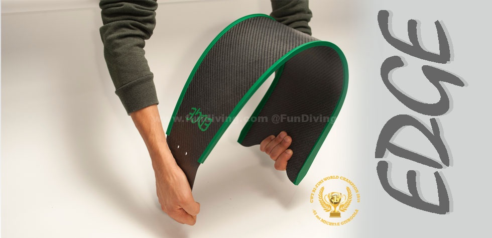 EDGE完全在意大利实验室设计和生产,是一款平衡了推进力和效能的优秀高科技产品。EDGE碳纤维脚蹼能让使用者以最小的体能来获取推进力,已帮助自由潜水人在动态屏气短距离泳池比赛项目中创下多项纪录。