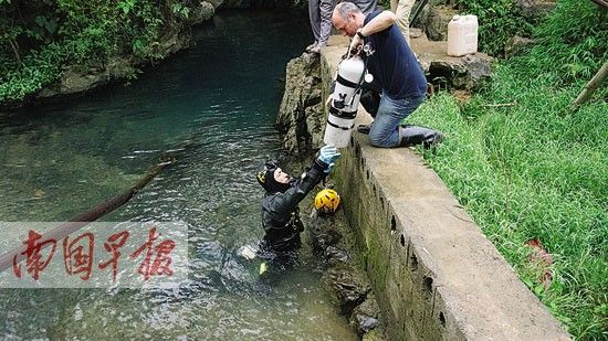 住在澄江河源头附近的一位村民告诉南国早报记者,3人在17日下午就已经将部分潜水设备搬到潜水点,并把它们放置在水下几十米深处,在第二天准备潜水前,又带来了另外一些潜水设备。