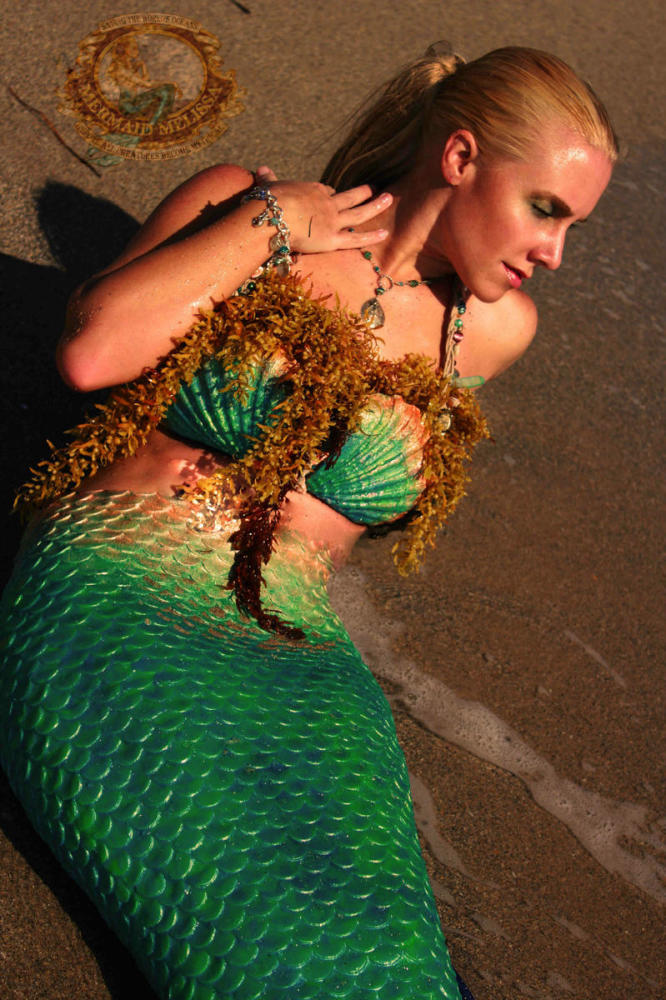 为了化妆成美人鱼的样子,梅丽莎要在身后拖着54斤重的鱼尾。
