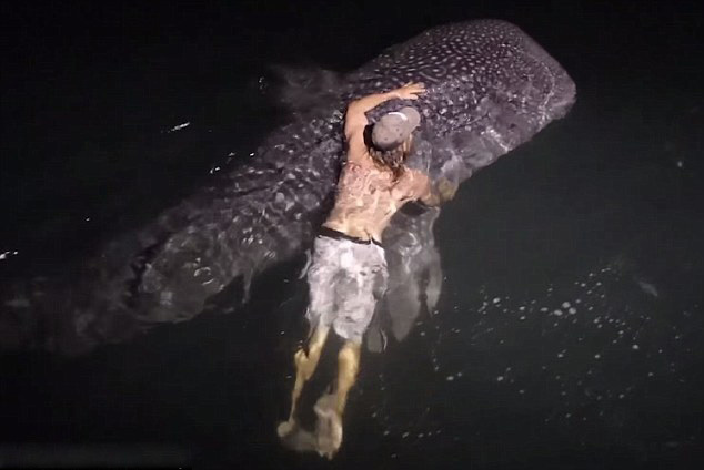 巨鲨迟迟没有离开,当其他人都睡去时,本尼竟然跳下船,和鲨鱼一起游泳。他骑坐在鲨鱼身上,还轻轻拍打了它。鲨鱼看起来十分温和,在渔船边停留了近5个小时后,最终游走了。