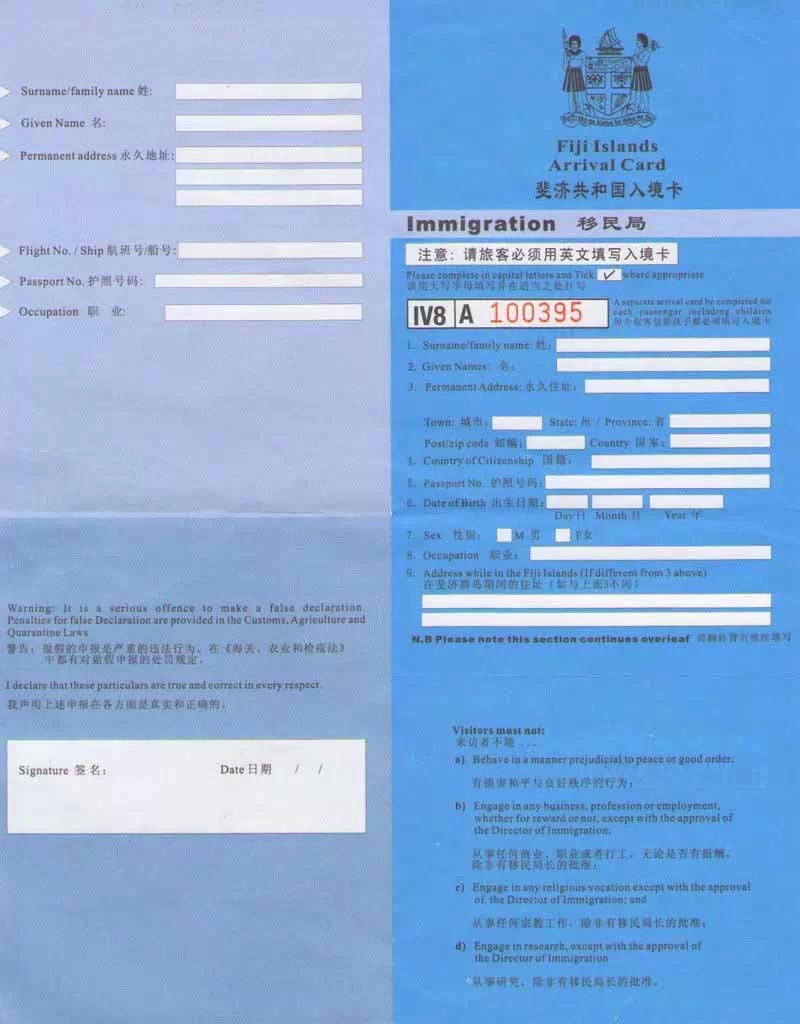 入境卡正面: