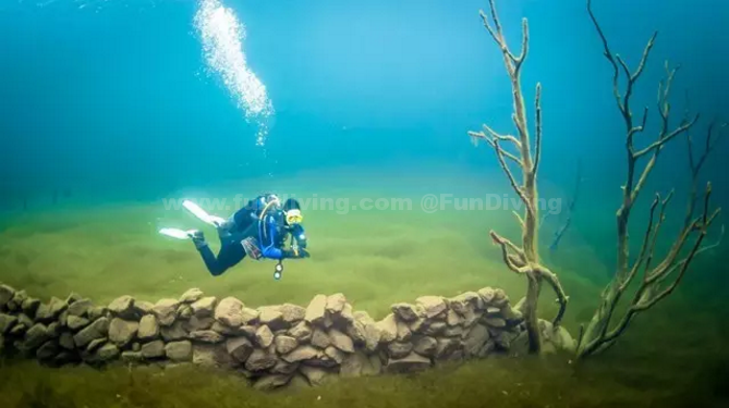 早在1908年,挪威西部发生山体滑坡,导致整个峡谷被封,洪水淹没了农田并形成了目前的lygnstylsvatnet湖,该湖现在已成为热门潜水地点,吸引了众多游客前来探索挪威的水下亚特兰蒂斯古城。 近日,摄影师larskorvald携其水下摄影装备前往lygnstylsvatnet湖进行拍摄,这是一场神奇而美妙的体验,透过清澈的湖水,你可以看到梦幻般的森林和百年古城遗迹,以及用来牧羊的围栏和运输货物的道路。 从这里你可以看出村庄的模样,诗情画意的场面! 这些堆砌的废石,你能从中找到曾经村庄的痕迹。 运输货物的道路,在水下看来,是一种不一样的体验。 这个矮小的低墙,潜水员刚刚可以从中钻过去! 考验中性浮力的时刻到了! 树枝交错的森林,仿佛进入了童话里的世界!