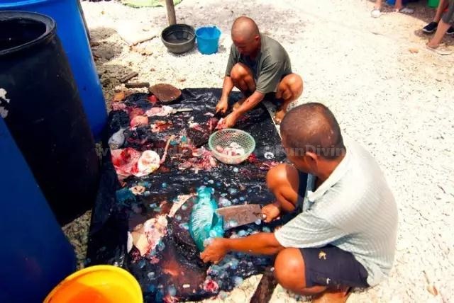 岛上住着十几个渔民,他们的住房很简陋,屋顶都压着很大很重的贝壳,听说是为了防止台风的。在这里你还能吃到渔民做的“海鲜大餐”。